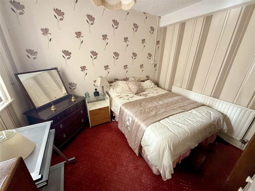 Range of high and low level units. Round edge work surfaces. Bowl and a half single drainer sink unit with mixer tap. Tiled walls. Tiled floor. PVC double glazed back door. PVC panelled ceiling with recessed spotlights. Adjoining utility store with access to entrance porch. - BEDROOM (1):