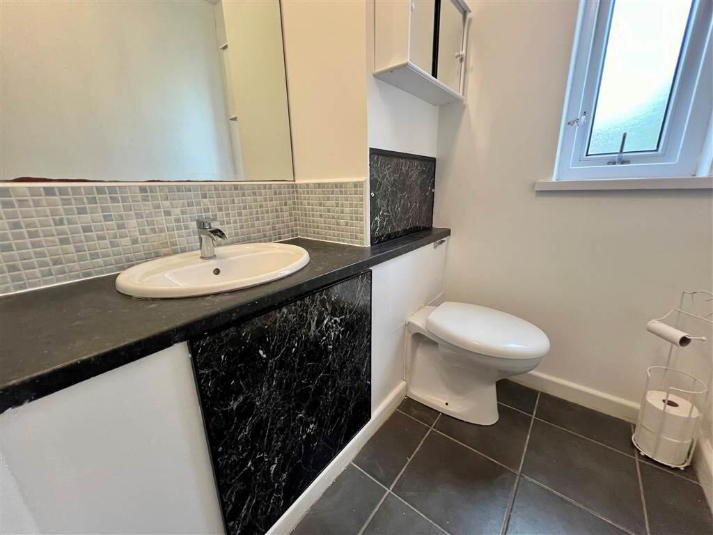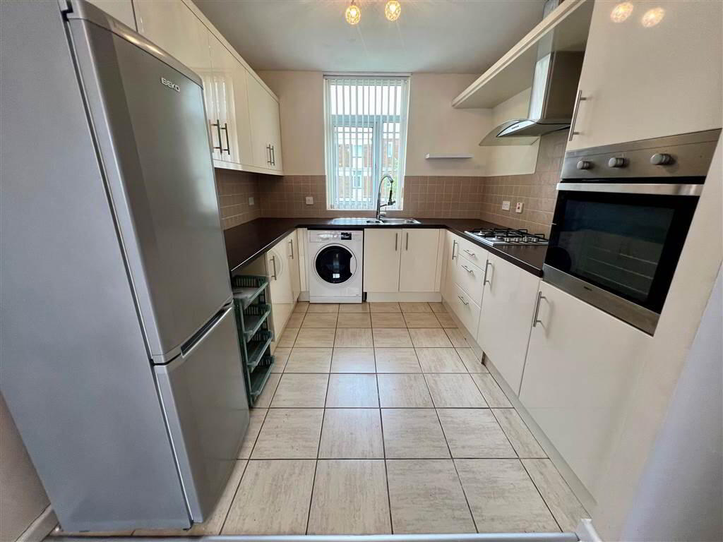 Range of high and low level units with wood effect worktops. 1 1/2 stainless steel sink with drainer. Plumbed for washing machine. Built in gas hob, electric oven and chrome extractor hood. Part tiled walls. Tiled floor. - BEDROOM (1):