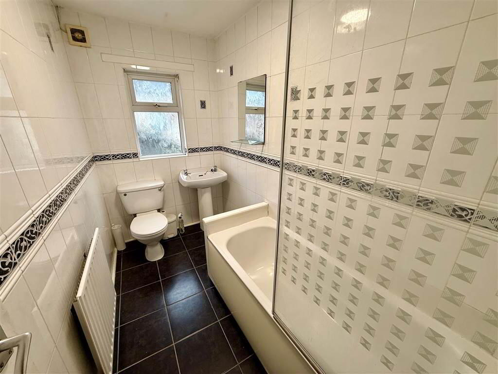 - Panel bath, low flush wc, pedestal wash hand basin.