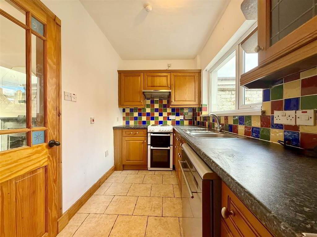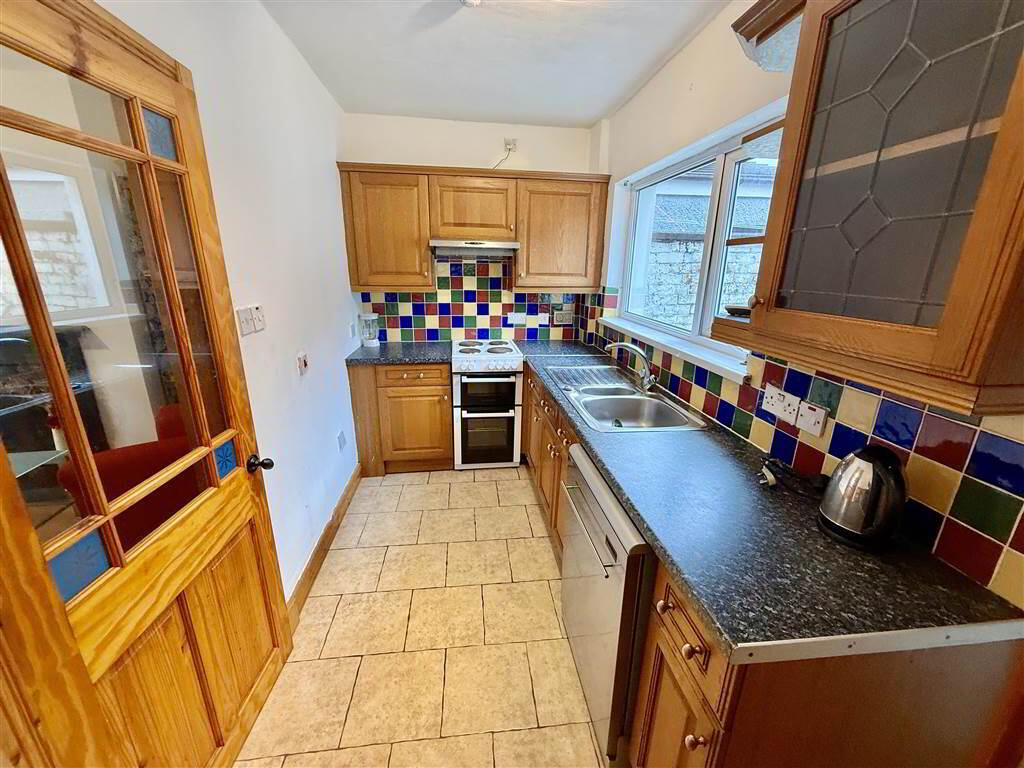 Range of high and low level units with marble effect worktops. 1 1.2 stainless steel sink with drainer. Plumbed for dishwasher. Tiled floor. - UTILITY ROOM: