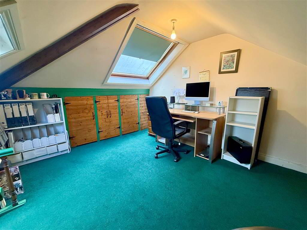 Upstairs, there are three well-proportioned bedrooms and a family bathroom. A converted roof space provides a fourth bedroom, offering additional flexibility for growing families, guests, or a home office.