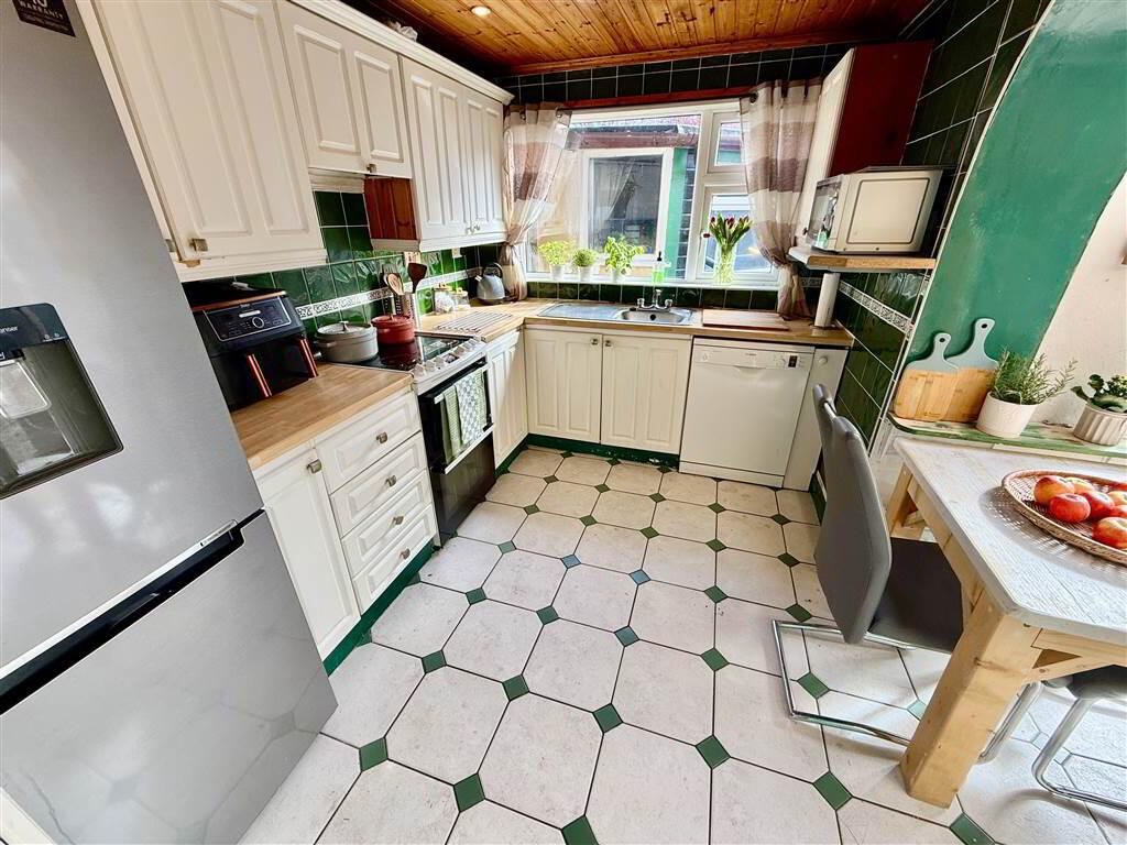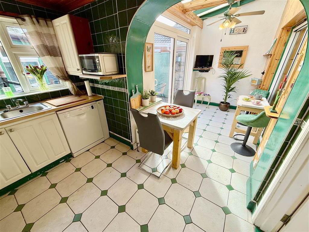 Internally, the home retains a traditional charm while offering modern, flexible living. The ground floor comprises a welcoming living room, a spacious main lounge with patio doors leading to the side garden, and an extended kitchen that flows seamlessly into a bright sunroom—perfect for everyday family life and entertaining.