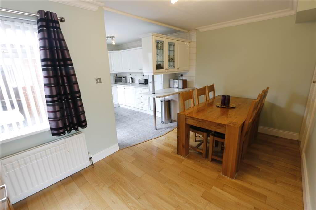 Range of high and low level units. Built in oven, hob and extractor fan. Breakfast bar. Plumbed for washing machine. Sink with drainer. Tiled floor. Tiled walls. Access to rear